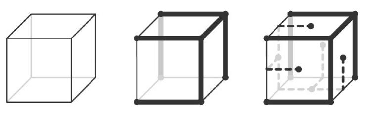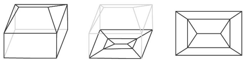 "rimuovere una faccia del poliedro, poi trasportarvi tutti gli altri vertici, ottenendo così una figura piana formata da poligoni racchiusi dal contorno della faccia rimossa"